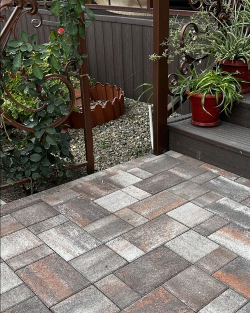 - Применяя брусчатку различной цветовой гаммы можно выполнить разнообразные рисунки и орнаменты.